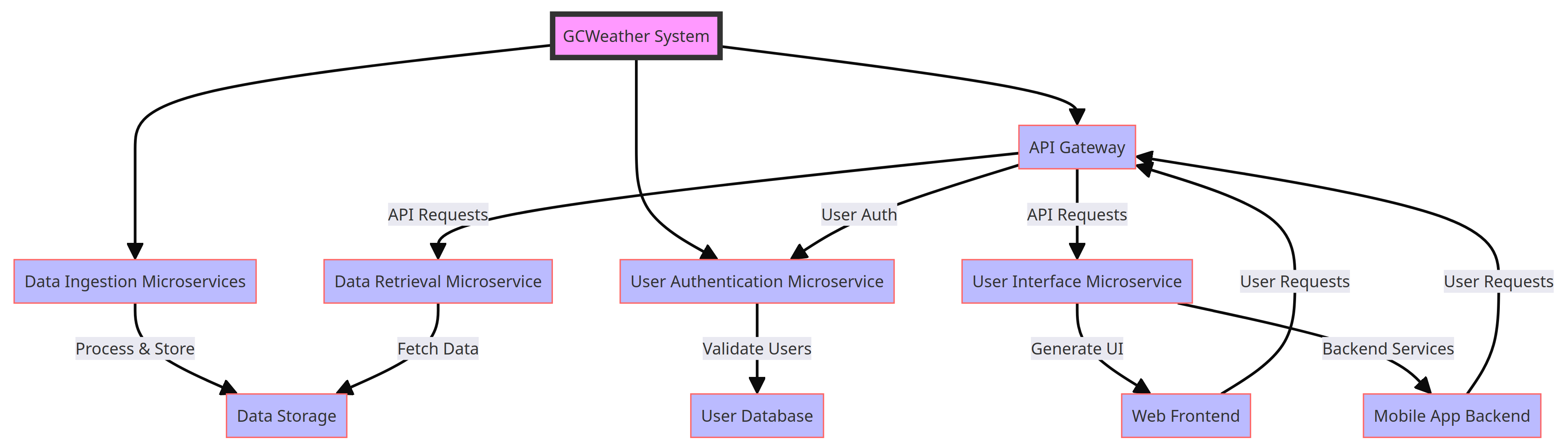 Data Retrieval Microservice: Fetches weather data from the Data Storage and provides it to the frontends.