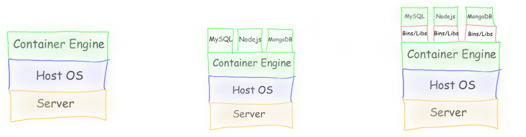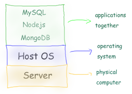( + ) Full Isolation, Full virtualization ( - ) Too many layers, Heavy-duty servers.
